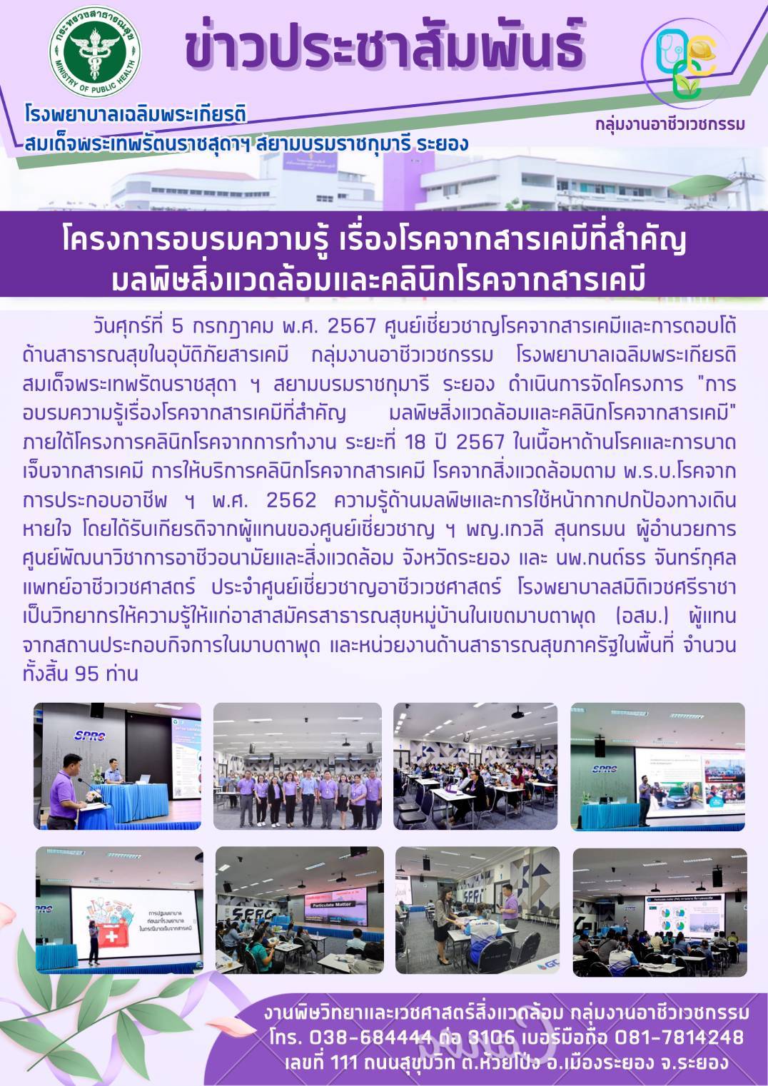 โครงการอบรมความรู้ เรื่องโรคจากสารเคมีที่สำคัญมลพิษสิ่งแวดล้อมและคลิโรคจากสารเคมี