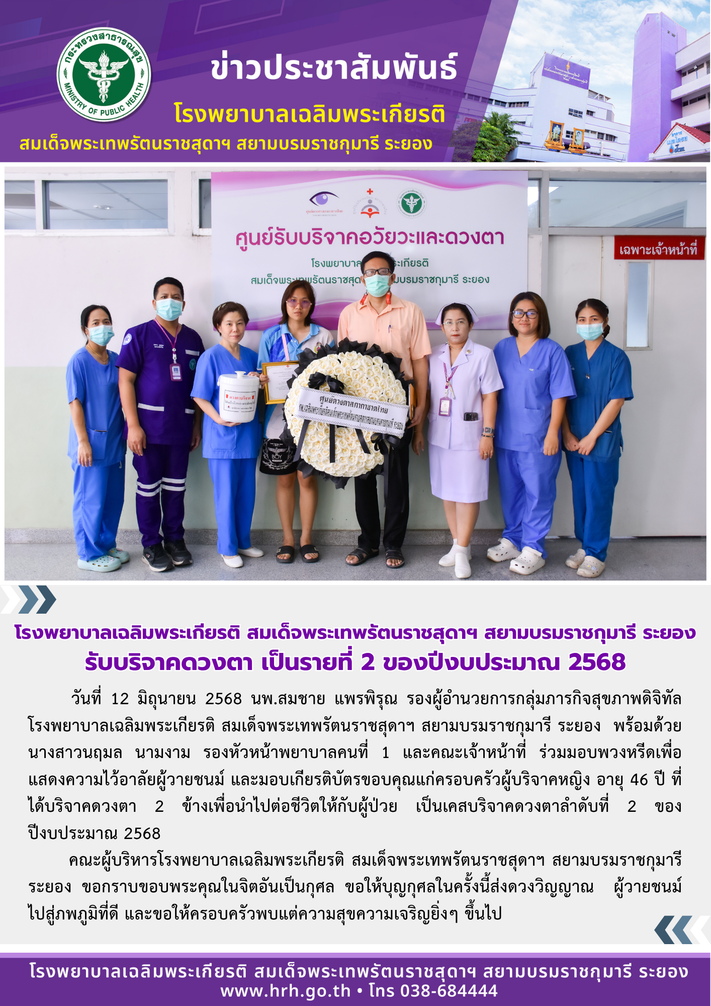 รับบริจาคดวงตา เป็นรายที่ 2 ของปีงบประมาณ 2568