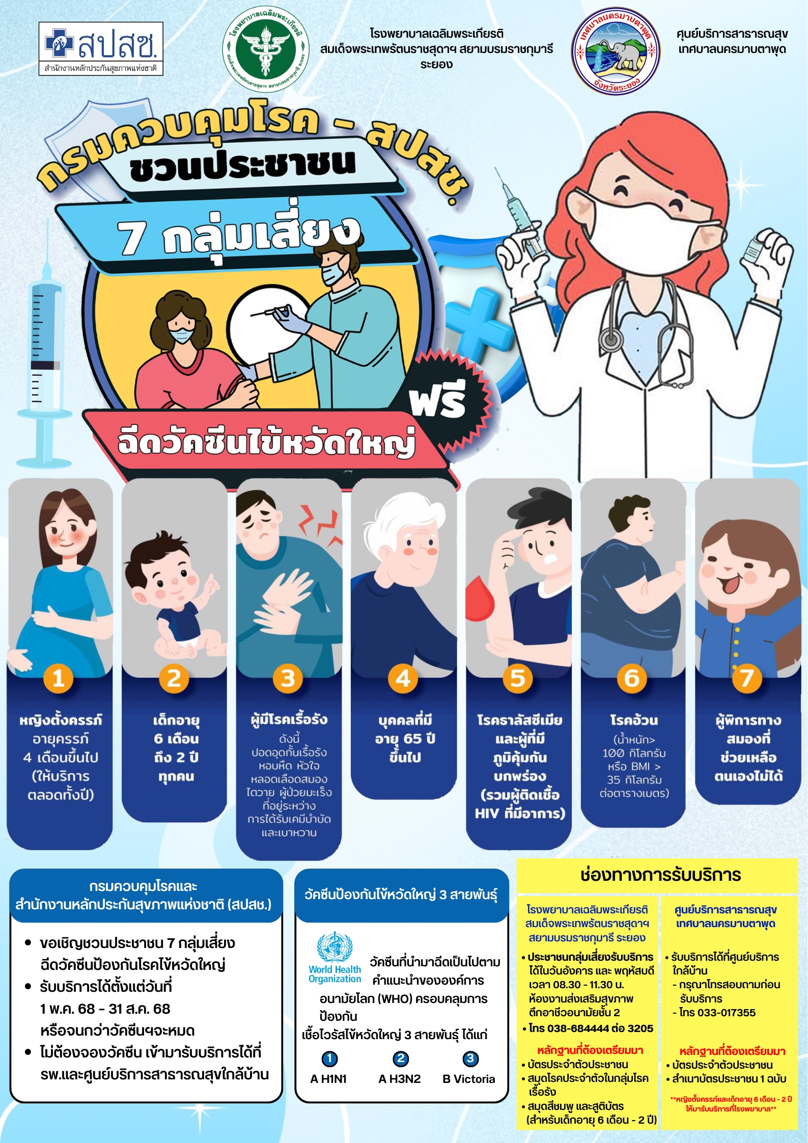 ชวนประชาชน 7 กลุ่มเสี่ยง ฉีดวัคซีนไข้หวัดใหญ่