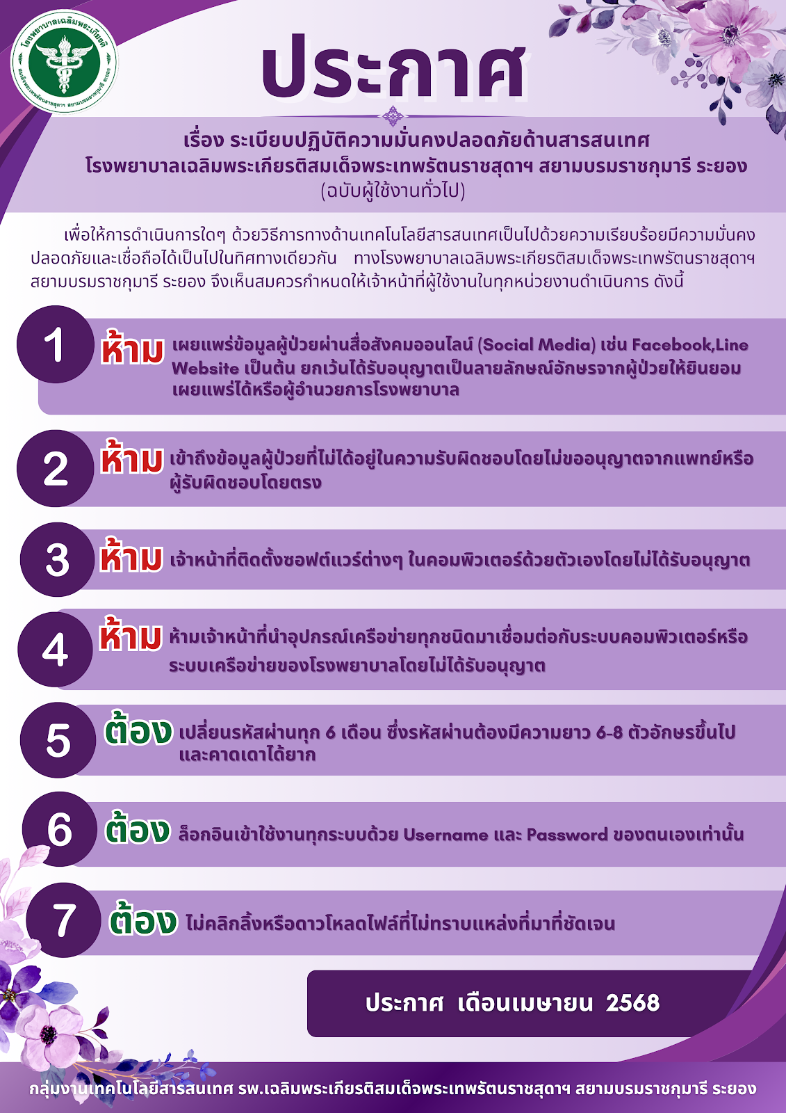 ระเบียบปฏิบัติความมั่นคงปลอดภัยด้านสารสนเทศ