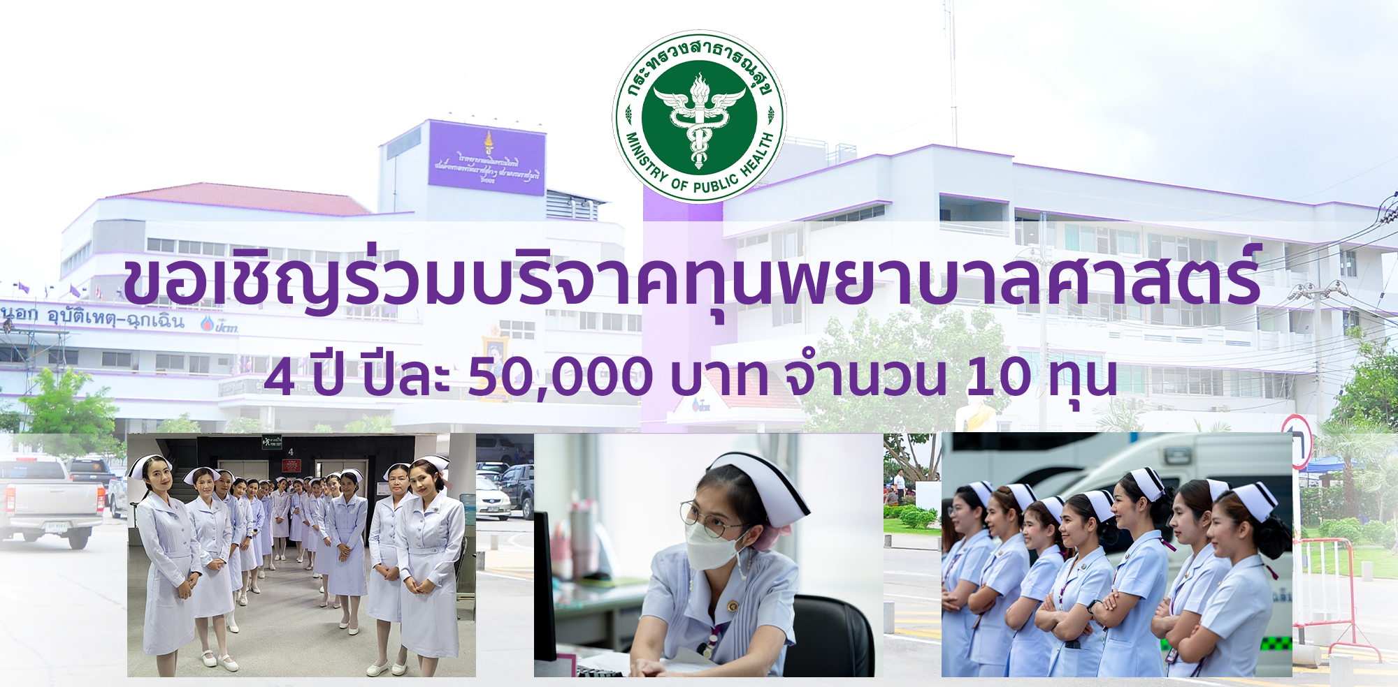 ขอเชิญร่วมบริจาคทุนพยาบาลศาสตร์ 4 ปี ปีละ 50,000 บาท จำนวน 10 ทุน