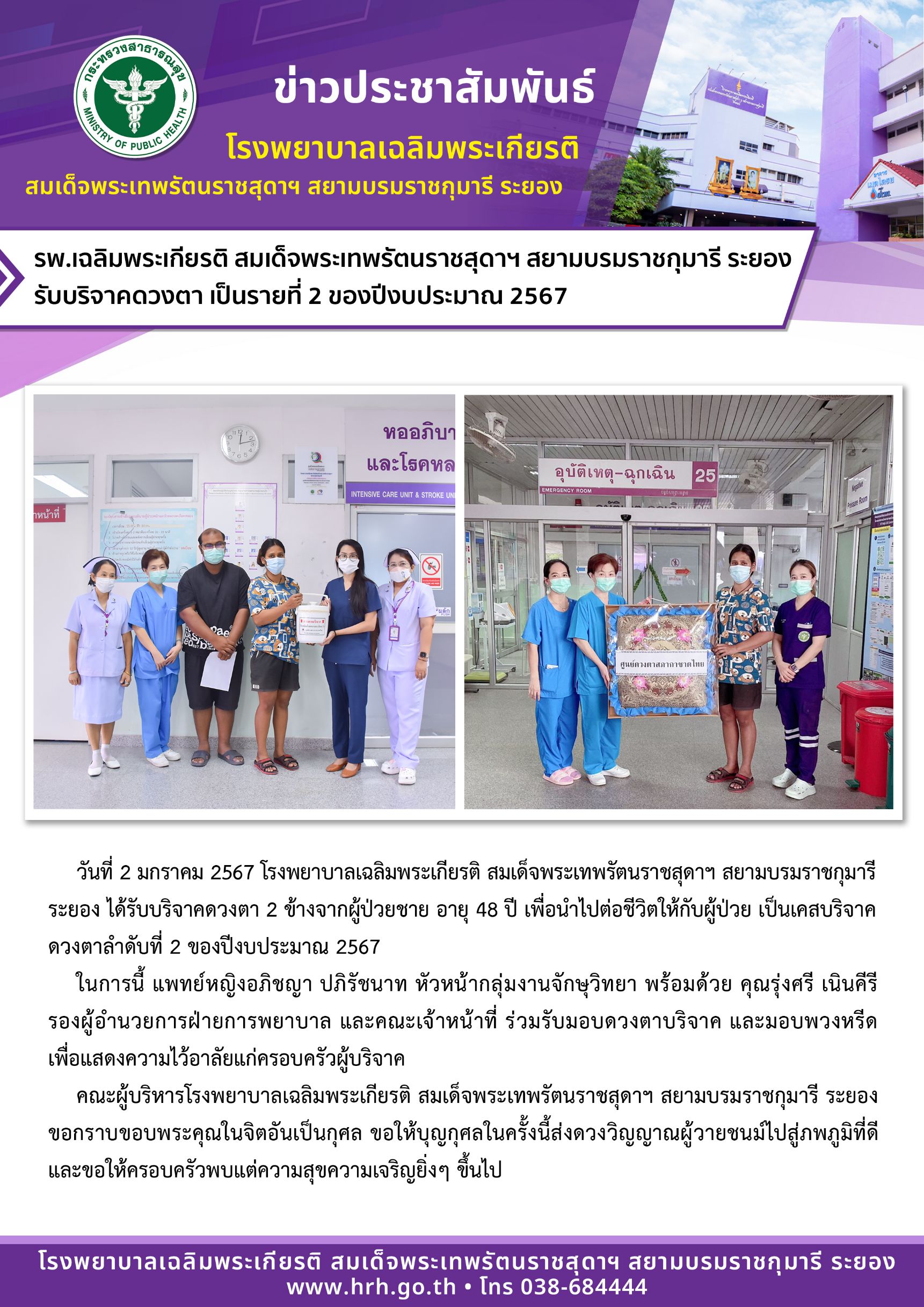 รับบริจาคดวงตา เป็นรายที่ 2 ของปีงบประมาณ 2567