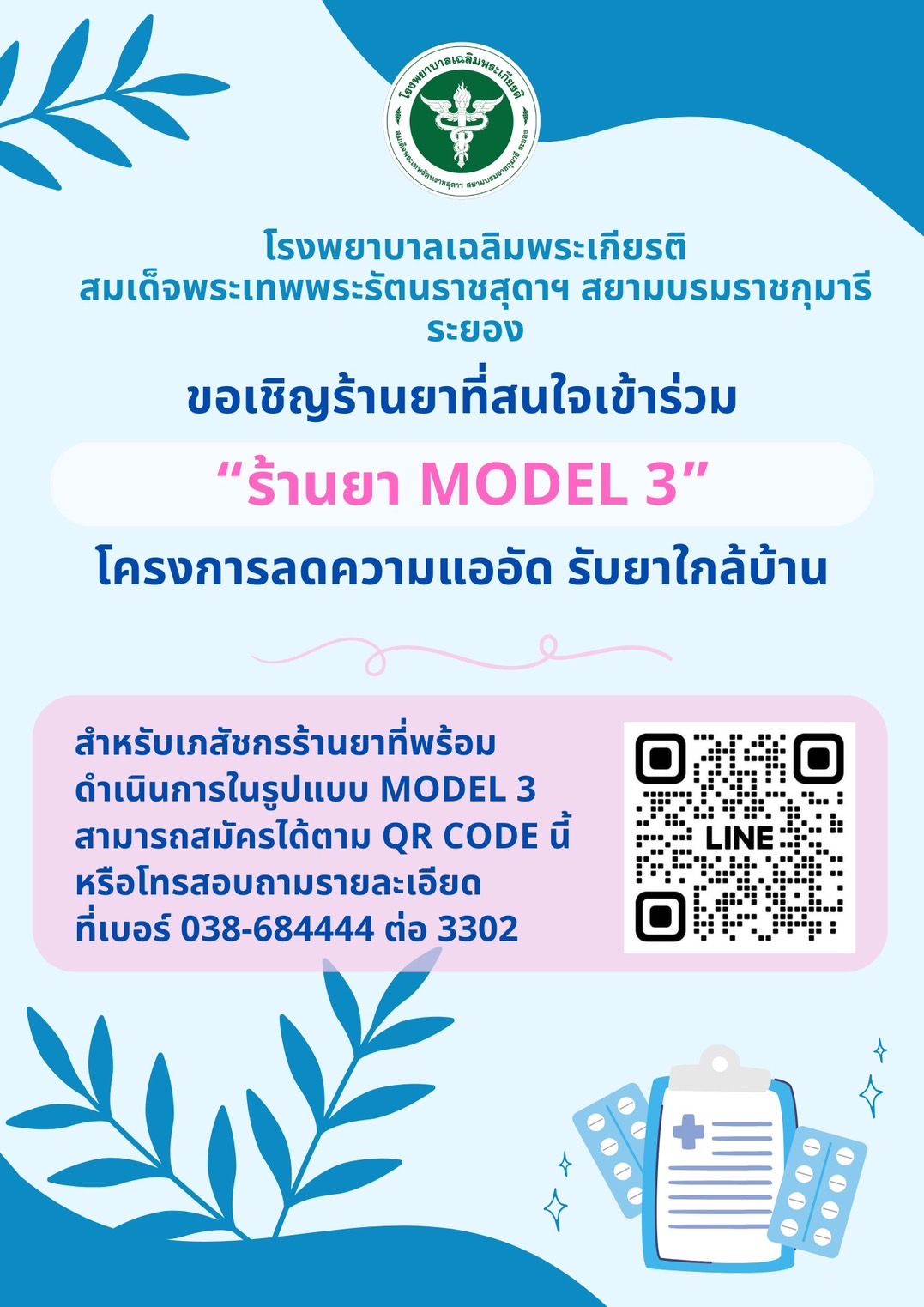 ขอเชิญร้านยาที่สนใจเข้าร่วม ร้านยา MODEL 3 โครงการลดความแออัด รับยาใกล้บ้าน